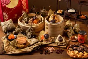 天成端陽御粽禮盒嚴選食材推出五款氣派不凡、軟糯可口的精緻香粽,首推長年熱銷「寧式東坡肉御粽」,將飯店招牌菜寧式東坡肉入餡,豐腴軟嫩的五花肉搭配客家酸菜,色、香、味俱全令人難忘,「蛋黃香菇古早粽」以粽葉飄香重現經典古早味,軟糯米飯伴隨豬肉、蛋黃、香菇與花生,層次濃郁回味無窮,「板栗蛋黃香豚粽」香Q糯米結合鹹香豬肉與綿密鹹鴨蛋,搭配甘甜鬆軟的栗子與香菇蝦皮提味,鮮鹹交織更添風味,「極品蝦貝鮮肉粽」匯集櫻花蝦、干貝、豬肉、鹹蛋黃、栗子與雪蓮子等海陸食材,口感豐富、層次細膩,奢華饗宴一次滿足,「南國香思甜蜜粽」圓糯米包裹細緻紅豆沙,口感綿密香甜,帶有淡淡米香與豆香交融,甜而不膩的懷舊滋味,禮盒搭贈主廚自製「手作黃金X.O醬」,遵循傳統手法、細活慢工、用料大方製成此款香氣濃郁的黃金X.O醬,鹹香兼具、滋味誘人,些微辣度更添食慾,送禮自用皆適宜。