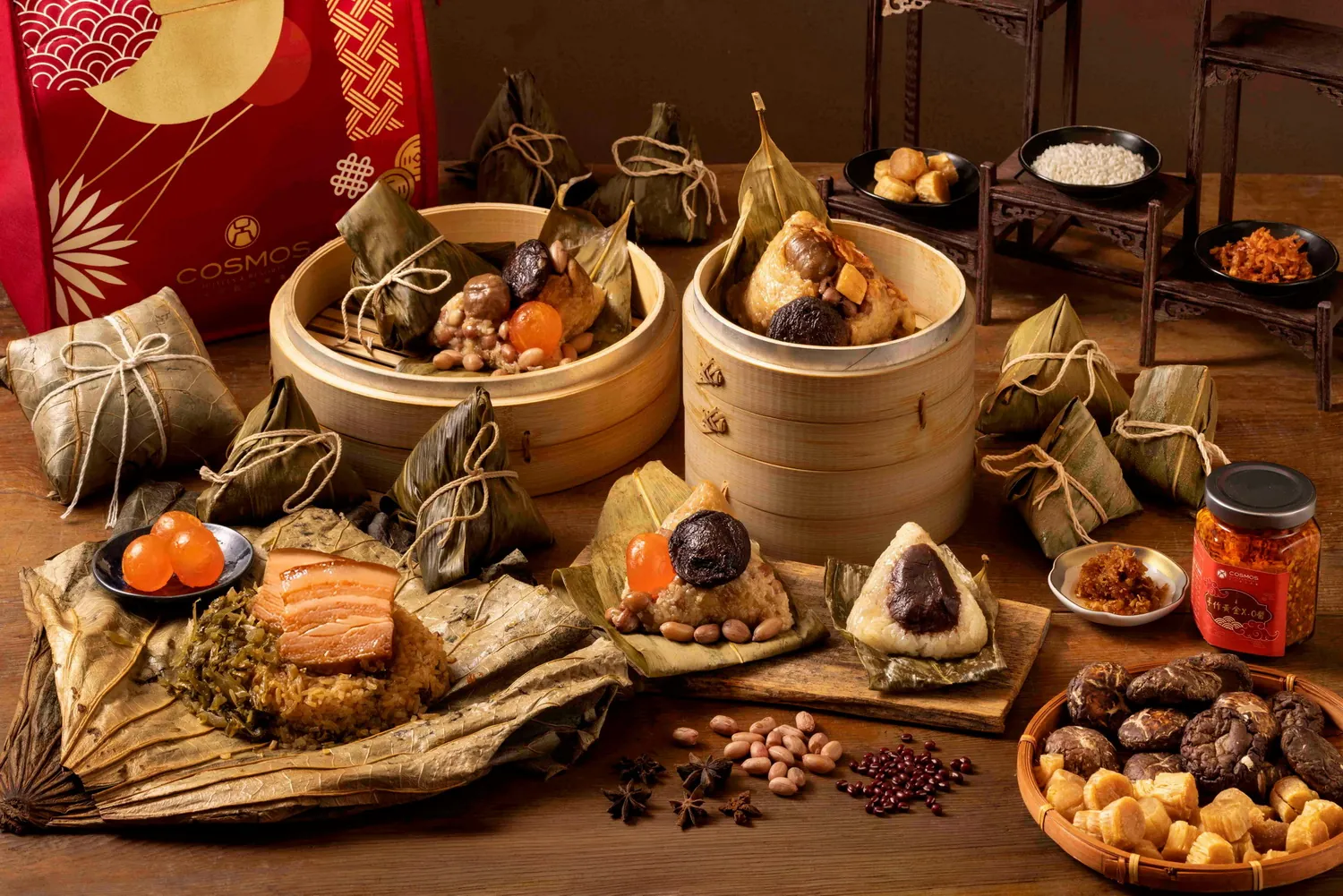 端午佳節粽飄香,天成飯店集團旗下台北天成大飯店、台北花園大酒店以及天成世貿國際會館主廚團隊聯手獻藝,即日起至2026年6月19日推出葷、素兩款各具特色的粽子禮盒。天成端陽御粽禮盒1,280元,集結長年熱銷的寧式東坡肉入餡以及多款特色精緻風味粽,再贈手作黃金X.O醬。同時看準健康取向與素食趨勢,針對茹素的消費者也推出天成端陽素粽禮盒999元,再贈天成好運甜辣醬。多款經典星級香粽以及主廚手作沾醬亦可提供單購120元起,5月18日前預購享早鳥優惠88折,大量訂購滿額30組再享飯店免費宅配服務,還可累積Cosmos CLUB會員點數!
