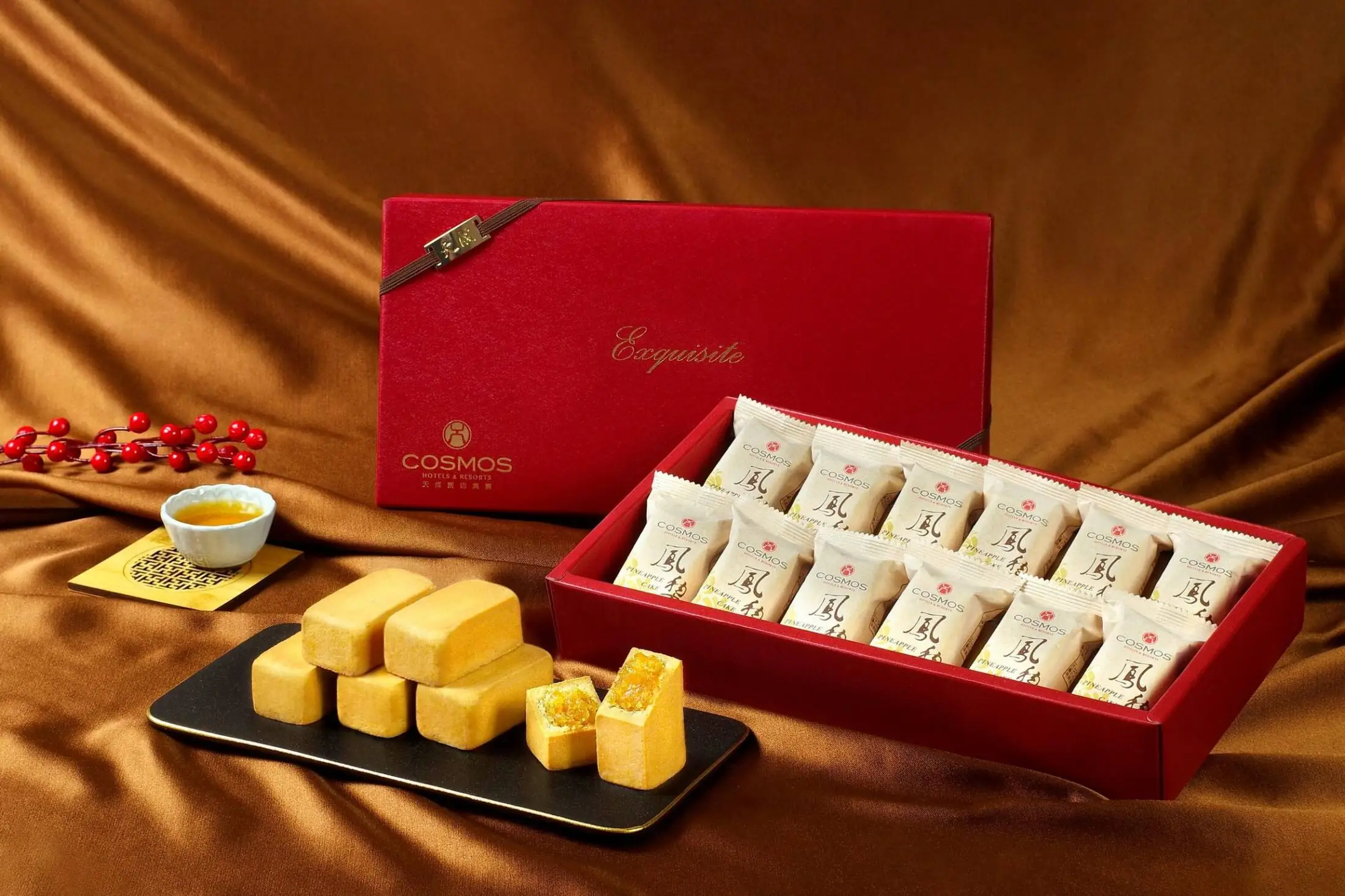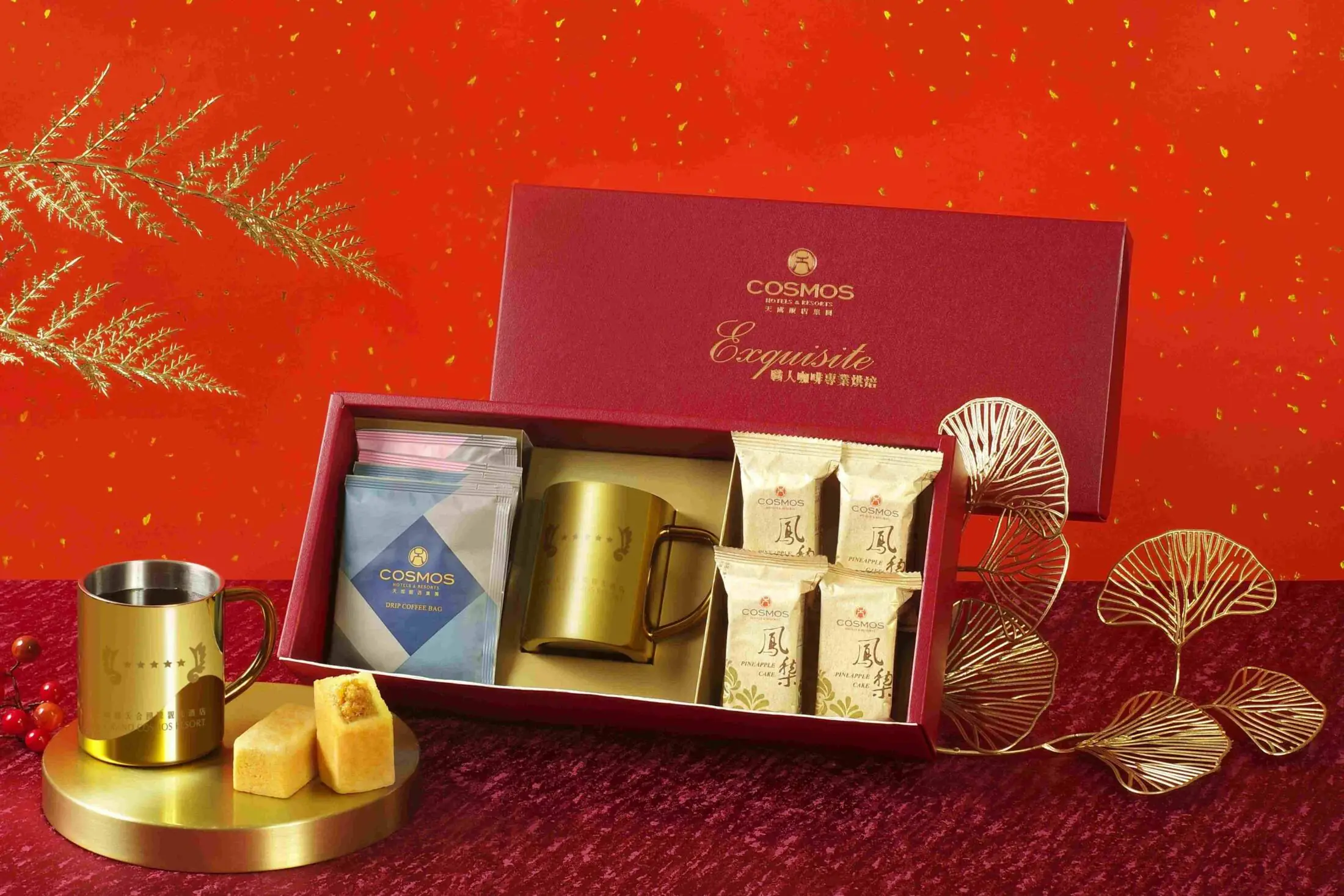 天成飯店集團從精緻體面的熱門禮盒,到高端的傳統春節禮盒,多元豐富的選項滿足消費者送禮需求,加入Cosmos CLUB會員即可享9折(酒類商品除外),或是於2026年1月19日前預訂且完成付款享早鳥優惠95折。「卓越五星職人咖啡禮盒」遴選飯自家烘焙藝妓與天成限定配方豆兩款濾掛咖啡,搭配以黃金比例製作而成鳳梨酥更能展現味香豐甜的飽滿平衡,同時包含卓越五星不銹鋼鍍金杯,為日常生活增加時尚感。另推出老饕喜愛的經典款禮盒,包含「南棗核桃糕禮盒」嚴選上等核桃與慢火熬製的黑棗泥,香氣四溢、Q軟香甜,詮釋獨特中式經典風味,「成就非凡鳳梨酥禮盒」選用台南關廟鳳梨,依照獨家比例配方精製出,外層鬆軟金黃餅皮,包裹著純手工熬煮的內餡,每一口散發出濃郁醇厚果香。
