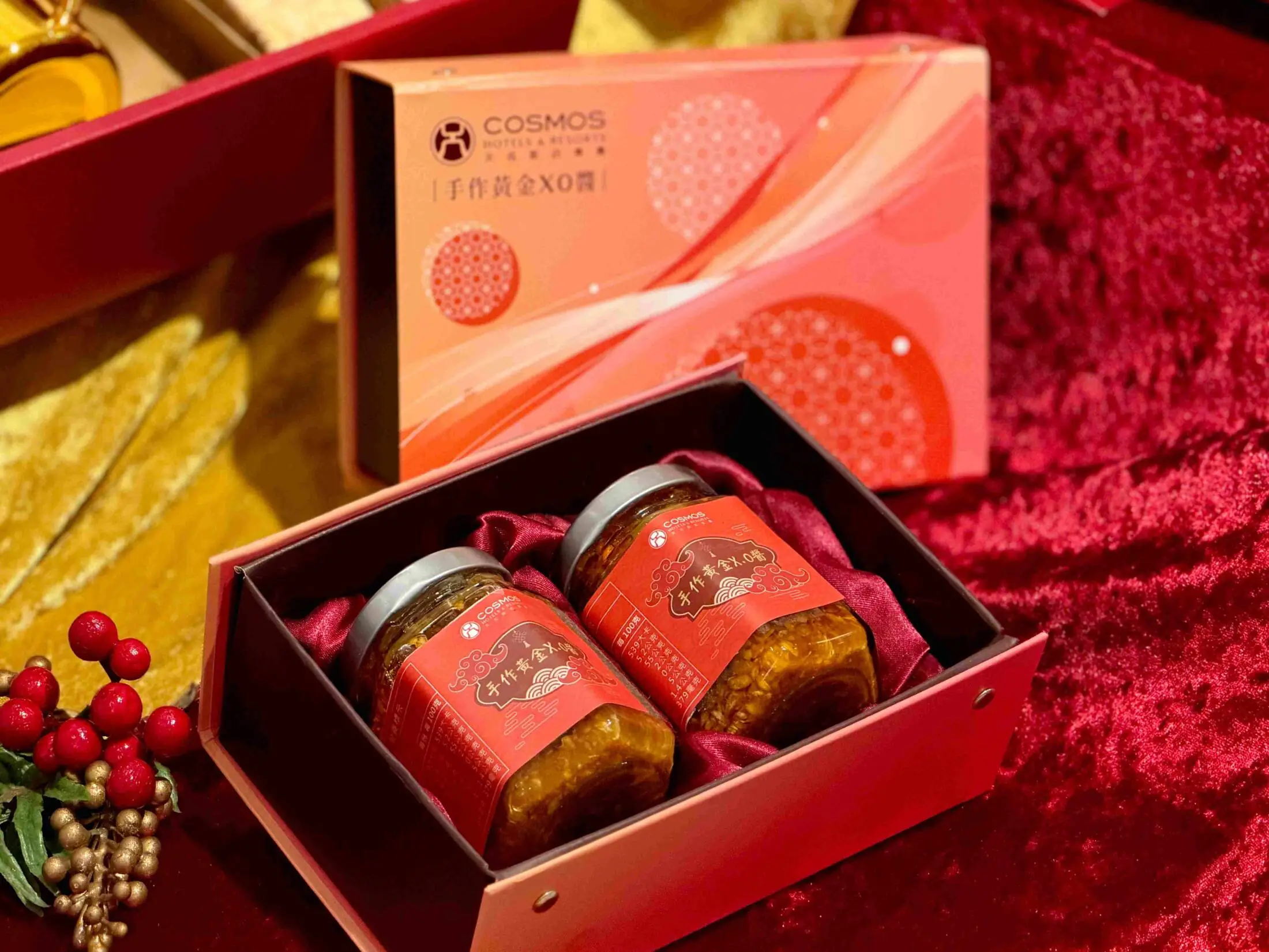 「手作黃金X.O醬禮盒」主廚遵循傳統手法、細活慢工所製成,鹹香兼具搭配些微辣度更添食慾,送禮自用皆適宜,「福滿雙韻禮盒」取步步高升寓意,飯店主廚自製港式臘味蘿蔔糕與古法黑糖红豆年糕,以經典雙味迎好運,讓團聚時刻添上圓滿滋味,為台北天成大飯店限定款。「花開富貴廣式肝臘腸禮盒」嚴選廣式臘味肝腸與臘腸,手工醃製保留肉質精華與水分,豐美口感和道地風味,象徵好運長久、福氣綿長,「花團錦簇年節禮盒」嚴選奢華珍寶齊聚的年節禮盒為貴氣贈禮首選,烏魚子、肝臘腸、手作X.O醬,典雅珍貴,大器之餘更顯不凡品味。