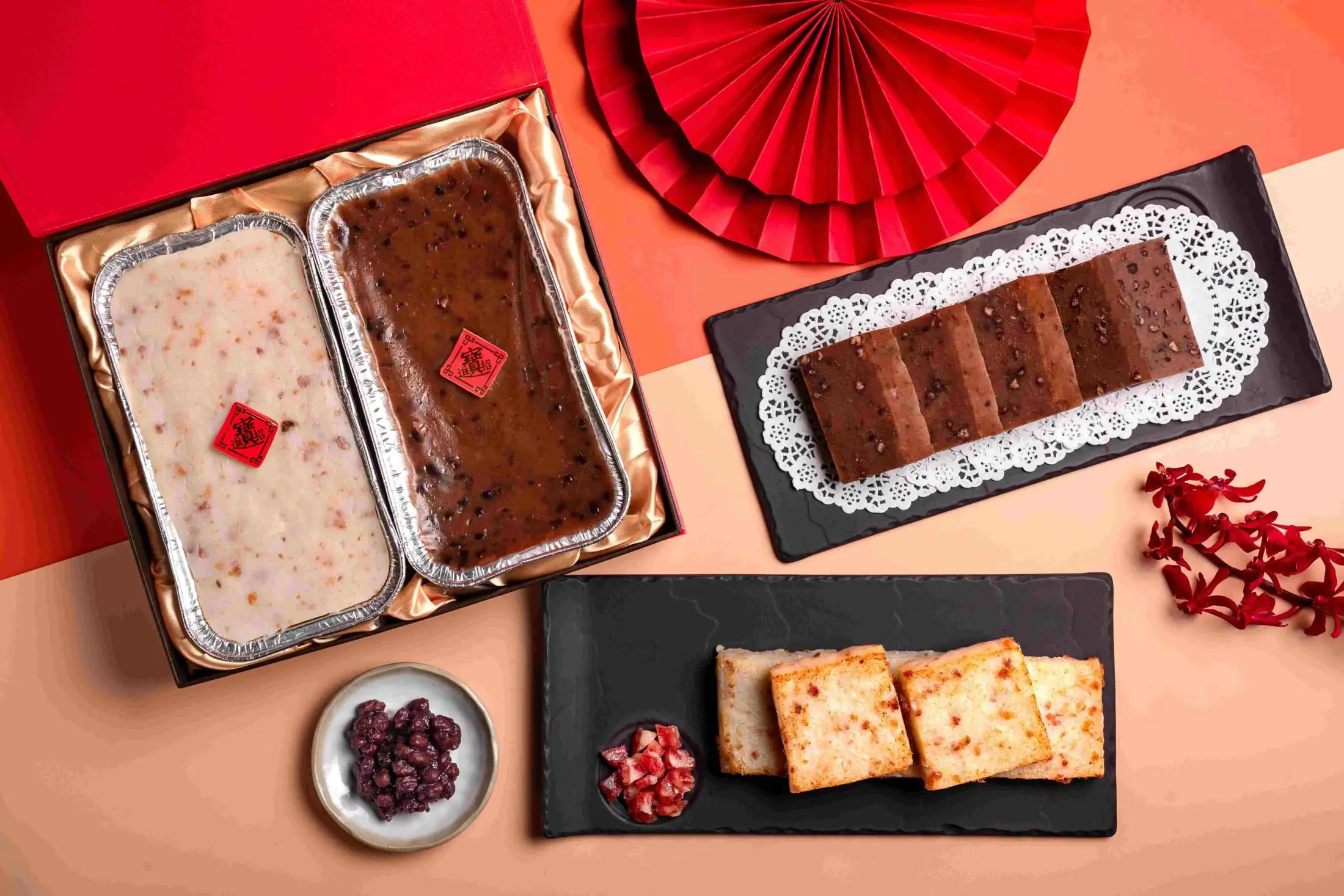 取步步高升寓意,飯店主廚自製香氣四溢港式臘味蘿蔔糕,與軟糯綿密的古法黑糖紅豆年糕,匯聚傳統風味與細膩手工,兩款經典糕點為團聚時刻添上圓滿又豐富的滋味。
