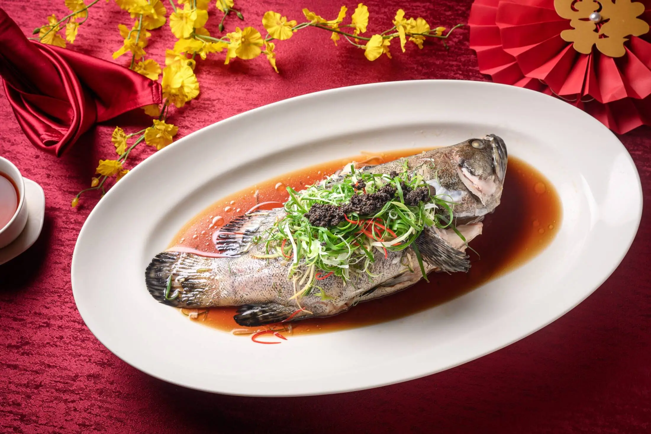 清蒸鎖住石斑魚的鮮甜肉質,點綴松露增添優雅香氣,味道清爽細膩,完美呈現海味原汁原味,帶來精緻高雅的年節饗宴。