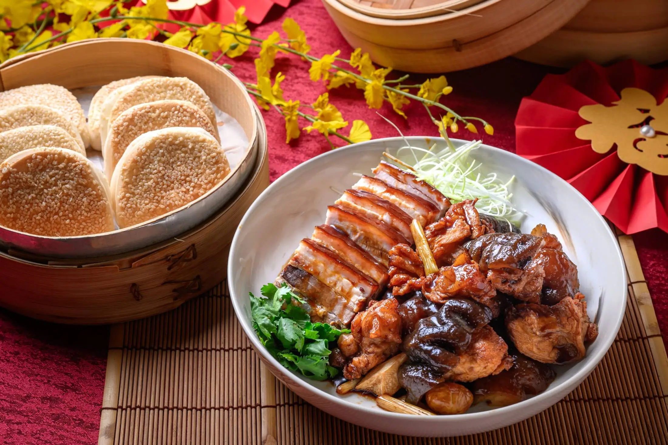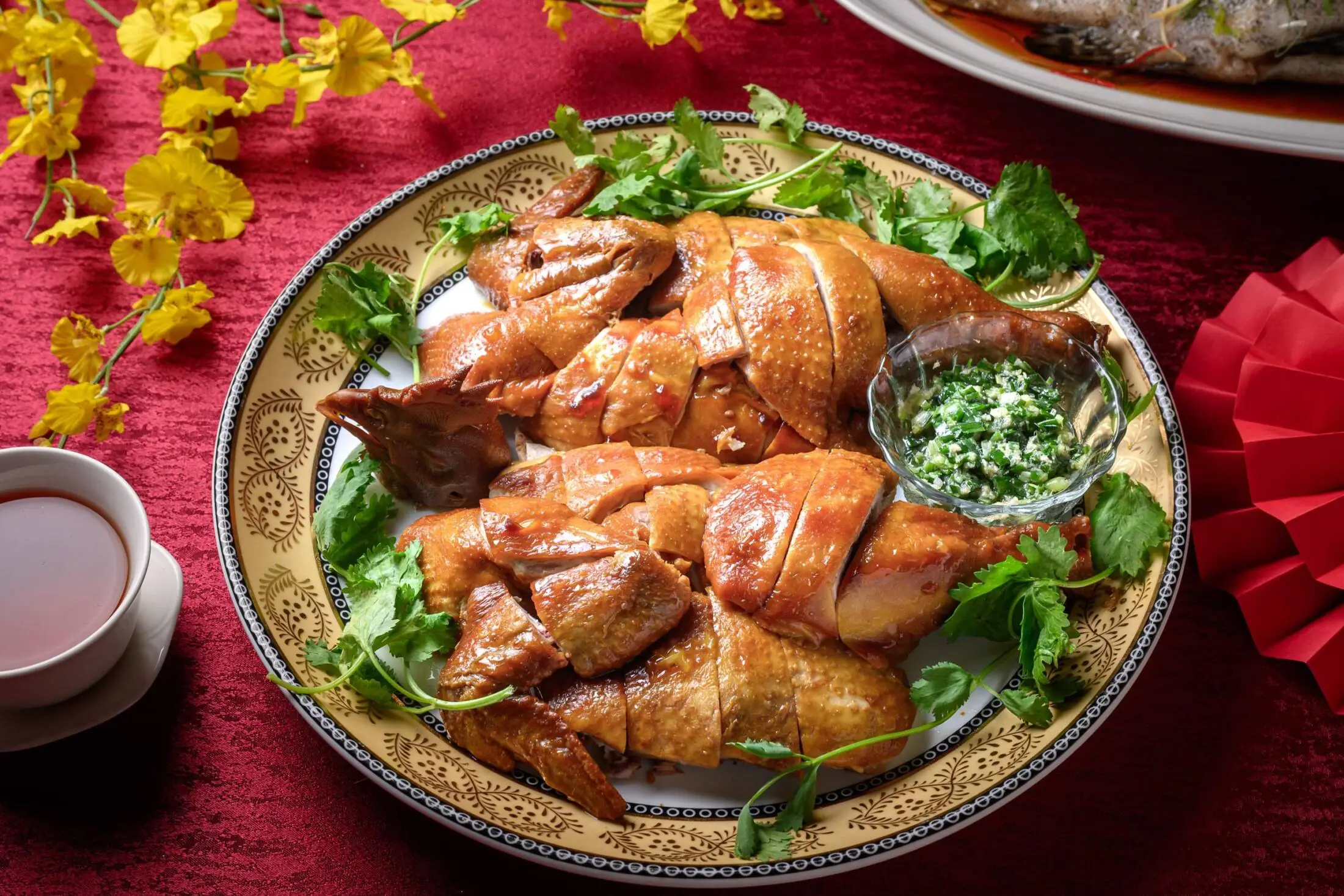 挑選1.8公斤重的新鮮雞肉,以主廚特製老滷耗時滷製,半泡半悶的秘訣造就每一口都軟嫩多汁,有「起家」的年節寓意,也增添餐桌上團圓的色彩。