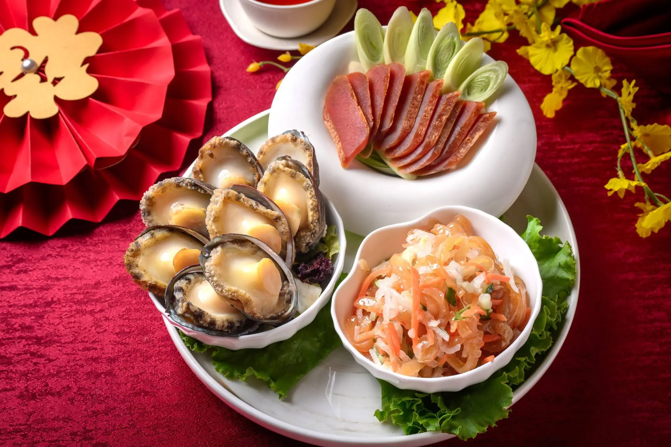 匯聚黃金烏魚子、五味鮮鮑魚、涼拌三絲海蜇,三種食材巧妙搭配,口感鮮美多層次,開胃又喜氣,象徵新春吉祥如意,為團圓餐揭開熱鬧序幕。